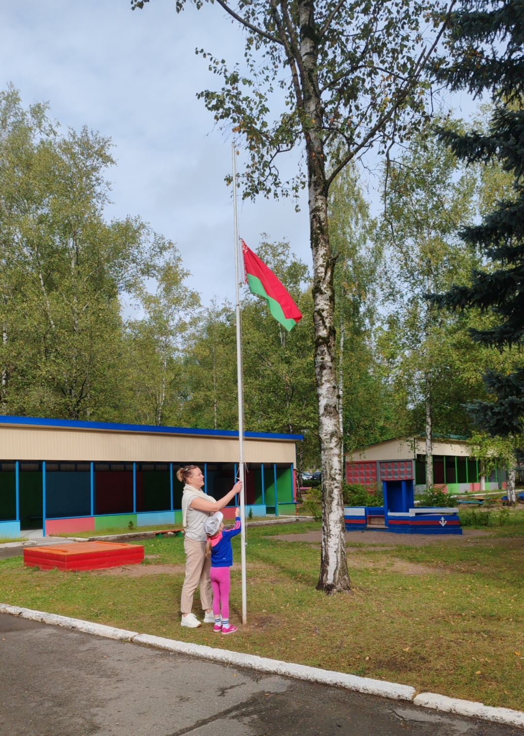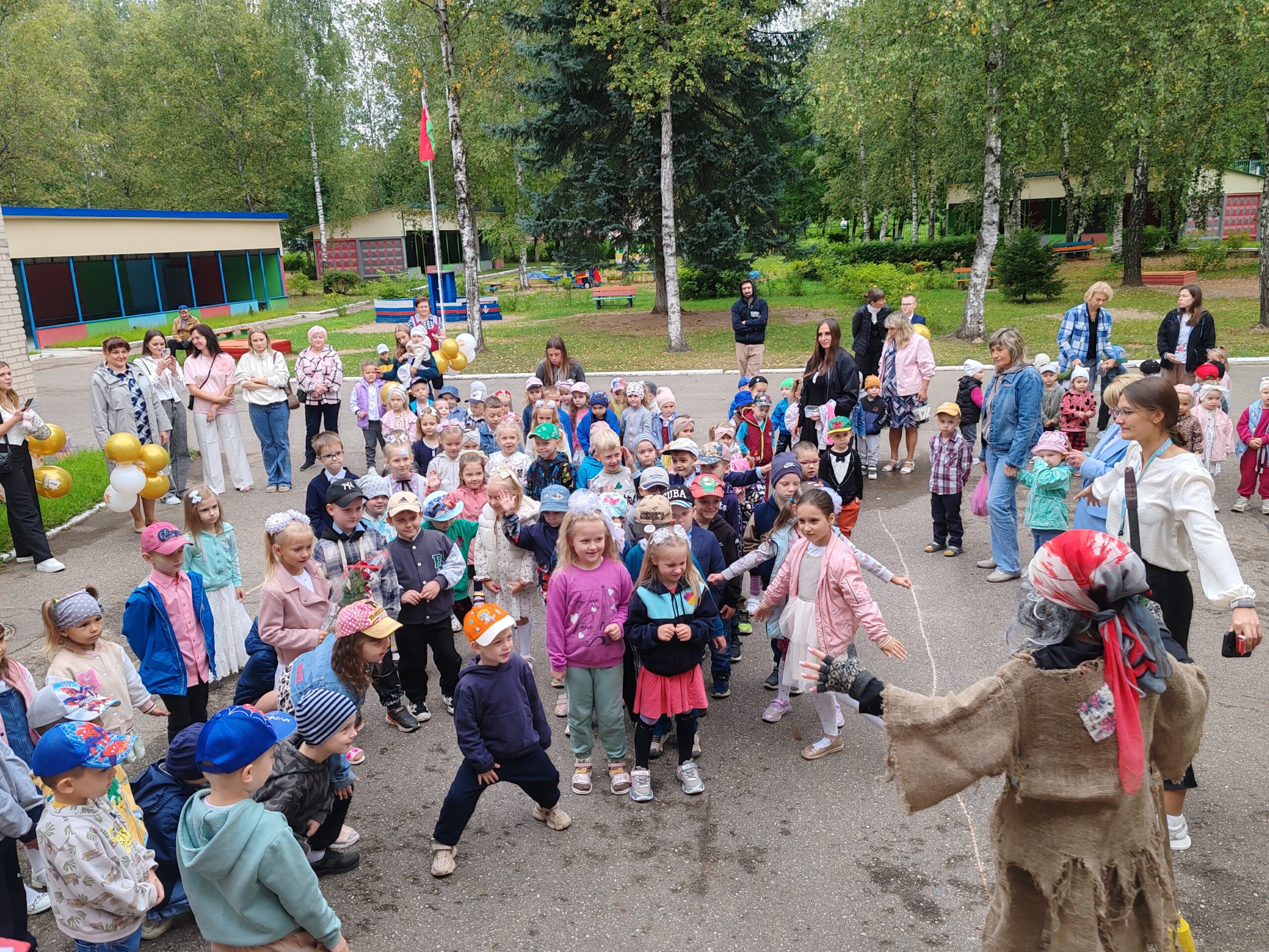 В нашем детском саду первый день нового учебного года прошел, как всегда ярко и эмоционально и начался с торжественного поднятия Государственного флага Республики Беларусь на территории учреждения образования. На мероприятие явилась проказница Баба-Яга, но испортить праздник ей не удалось! Мероприятие прошло весело и интересно, в атмосфере дружбы и радости.